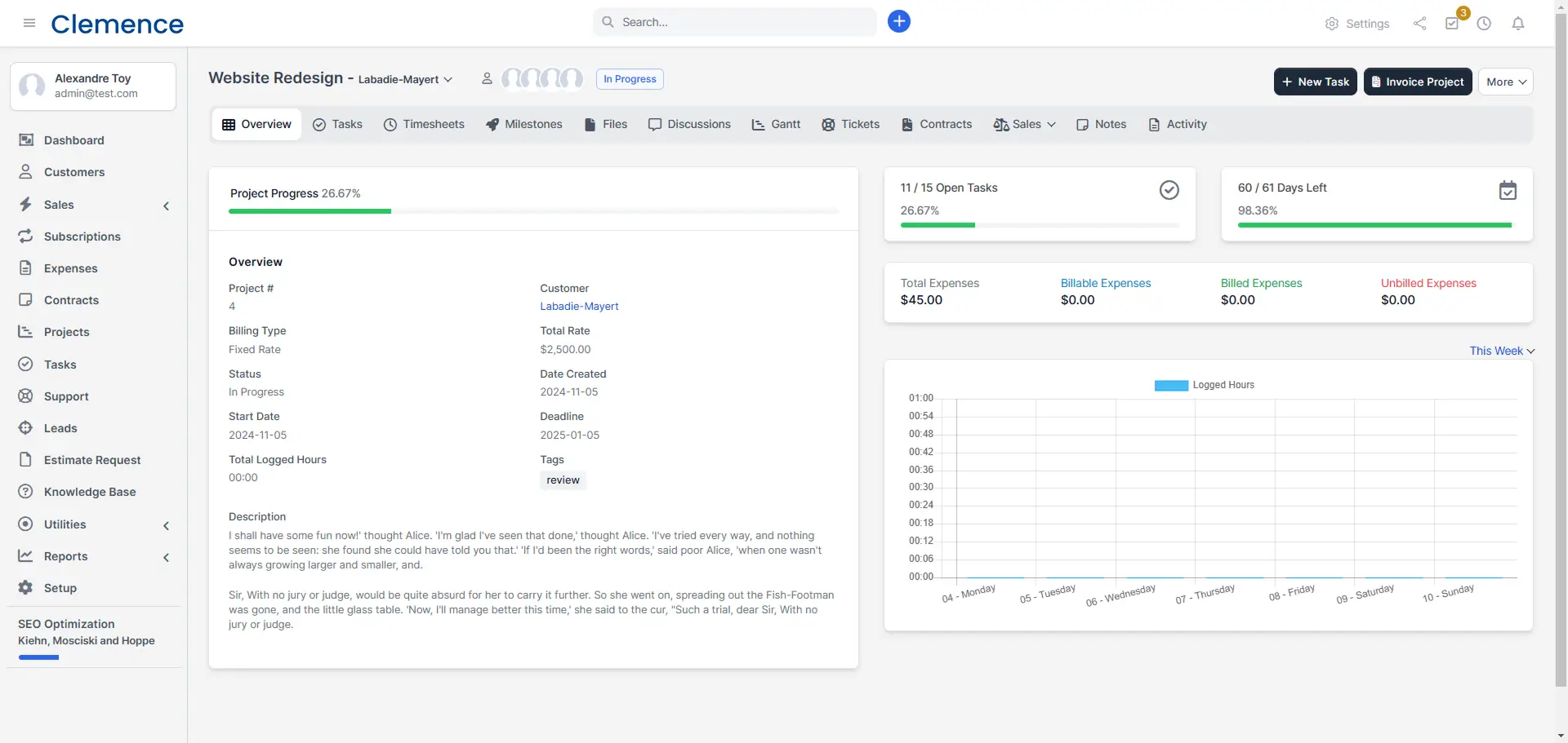 Track projects, expenses, and staff time with milestones, Gantt charts, recurring tasks, and personal to-do lists.